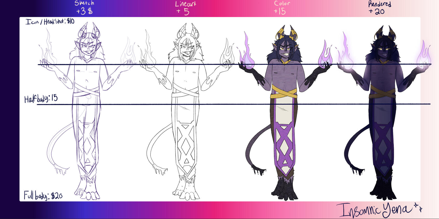 - I prefer payment upfront but I can take half upfront and the other half can be paid before the drawing is done